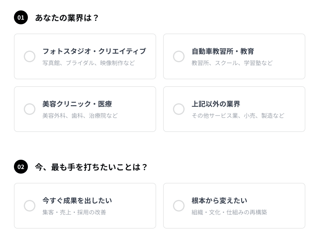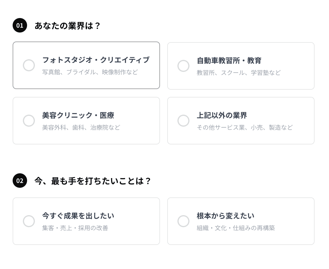 2つの質問で、最適な事例をご紹介